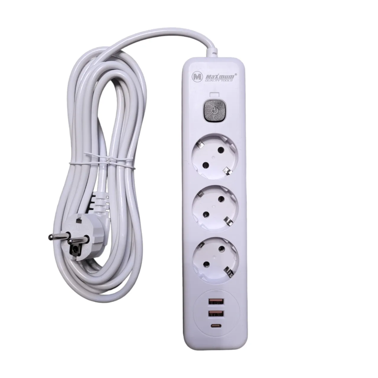 Удлинитель с заземлением 2 м, плоский, 3 розетки EU_UK_US, 5 USB портов,Type C,T05, "MAXIMUM" MX 148