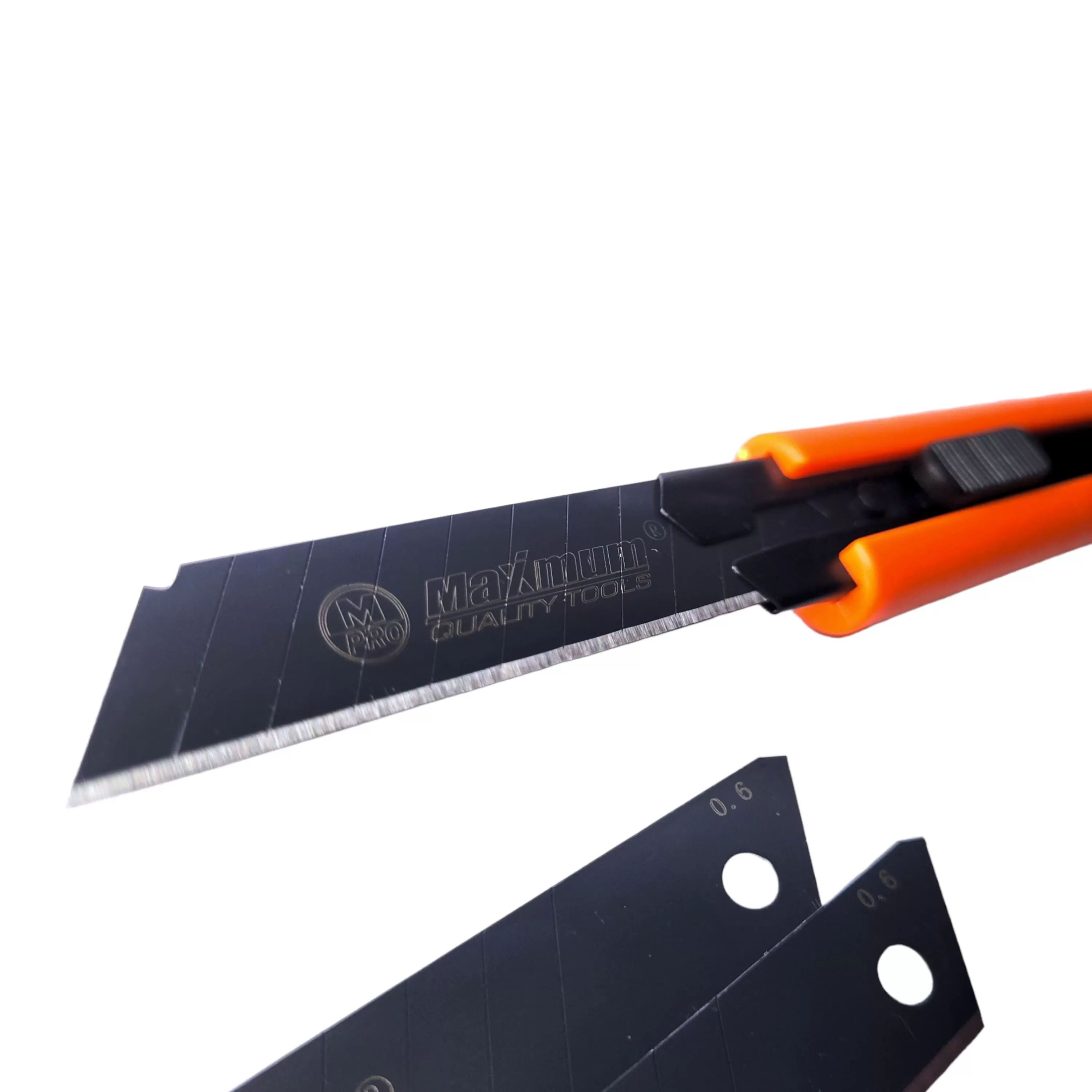 Нож канцелярский усиленный 18 мм + 2 лезвия 0.6 мм, с фиксатором , "MAXIMUM" MX 13278