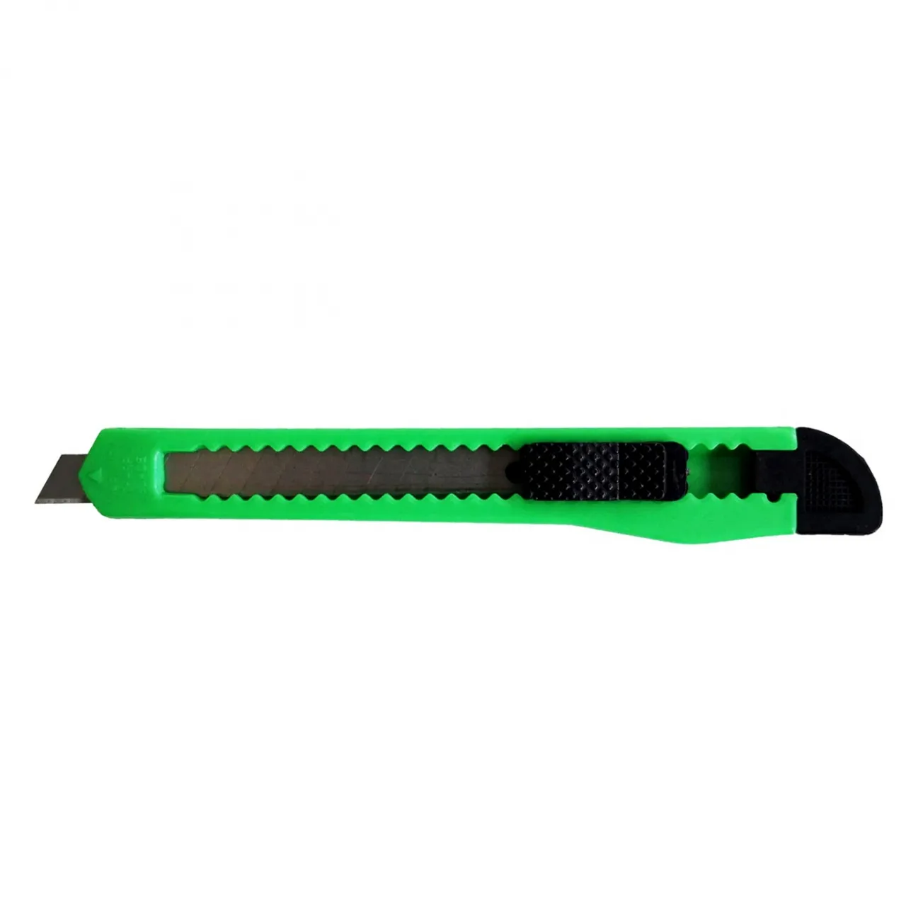 Нож канцелярский с фиксатором оборудован сегментированным лезвием шириной 9 мм и поставляется в различных цветах. Канцелярский нож 12 см предназначен для резки бумаги, картона, ткани и пластика. Ребристый пластиковый корпус надежно лежит в руке и не скользит. Отламывающиеся сегментированные стальные лезвия не боятся коррозии и имеют качественную заводскую заточку. Система фиксации лезвия push-lock и насадка для безопасного отделения сегмента лезвия делают работу безопасной.