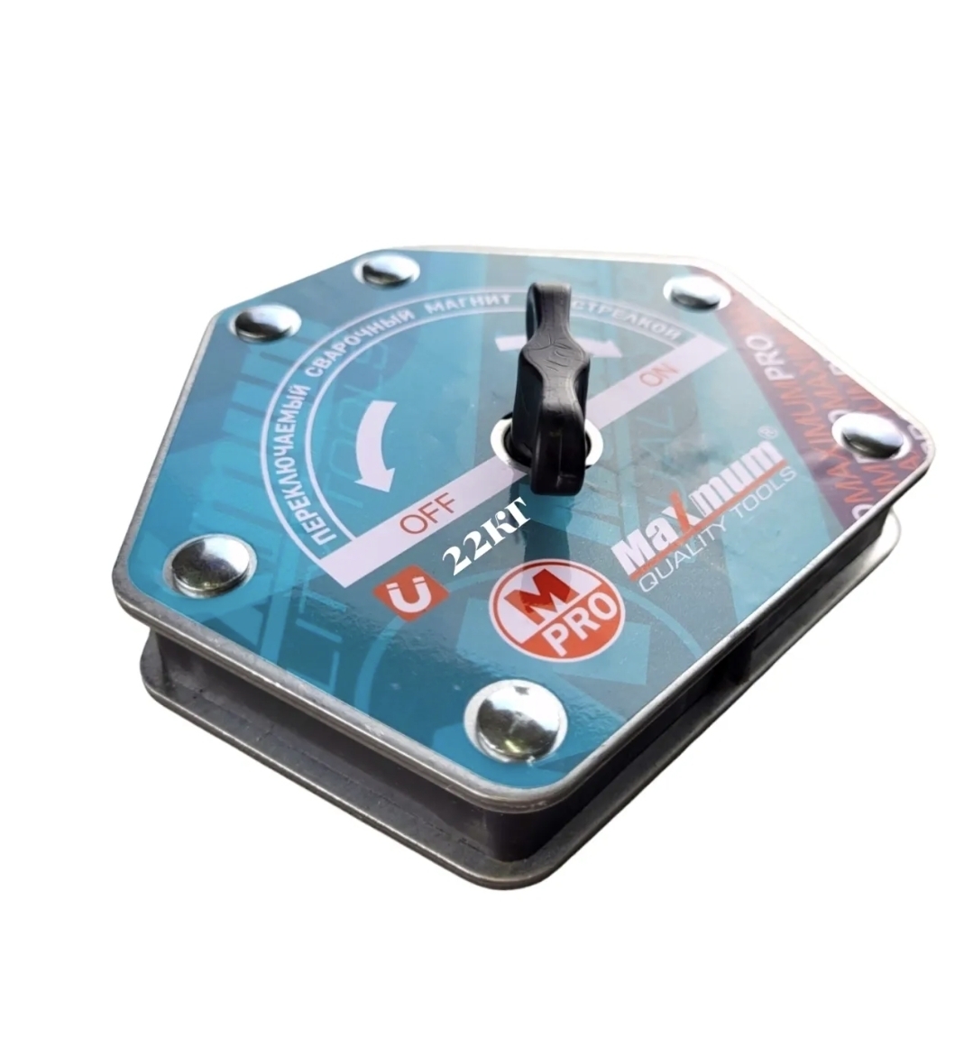 Отключаемый магнитный фиксатор для сварки — шестиугольник от «Maximum Quality Tools» позволяет производить точное выставление углов в процессе проведения сварочных работ. Отличительной особенностью данного магнитного фиксатора является возможность отключения магнитного поля – это решение позволяет быстро и легко устанавливать и снимать фиксатор с материалов, что значительно экономит время и повышает эффективность сварочных операций. Отключив магнит он снимается с детали без какой либо силы, не сбивая точность выставленных углов заготовки.