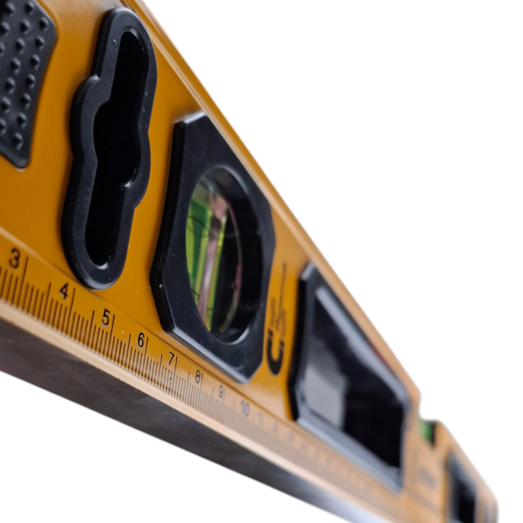 Противоударный корпус со специальными торцевыми заглушками — устойчив к механическим воздействиям и падениям, что гарантирует долгий срок службы. Уровень строительный с 3-мя глазками, один из которых поворотный, имеет первый уровень точности показаний ≤ 0.05мм/м.
