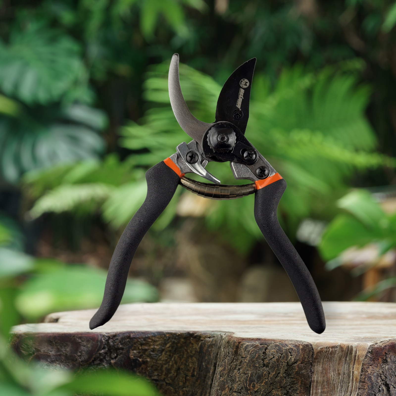 Секатор с прочным стальным лезвием SK5 предназначен для обрезки веток деревьев и кустарников, а так же цветов и плодоножек толщиной до 20 мм. Инструмент обеспечивают идеально гладкий срез, сохраняя целостность обрезаемых веток.