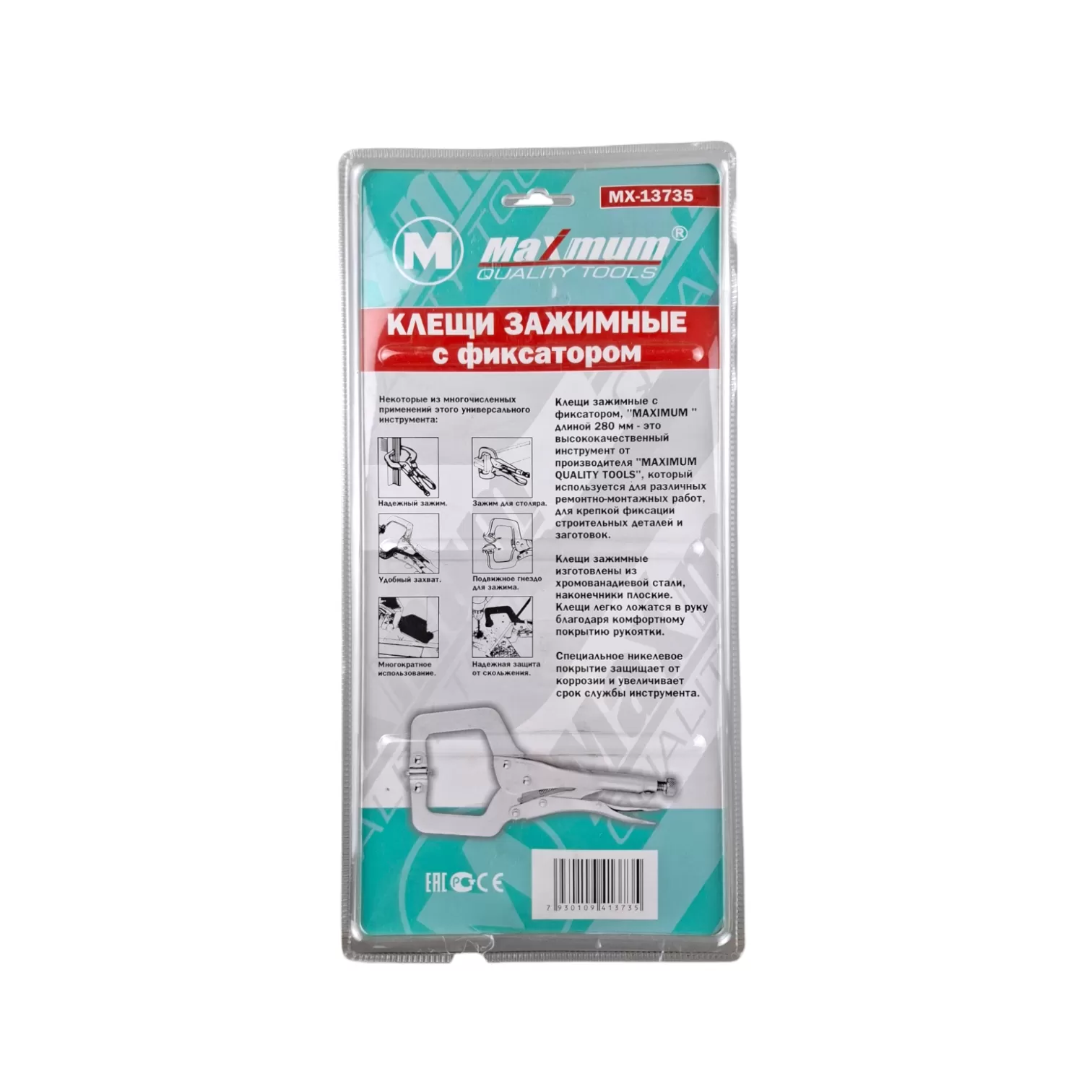 Клещи зажимные с фиксатором 280 мм, металлические, "MAXIMUM" MX 13735