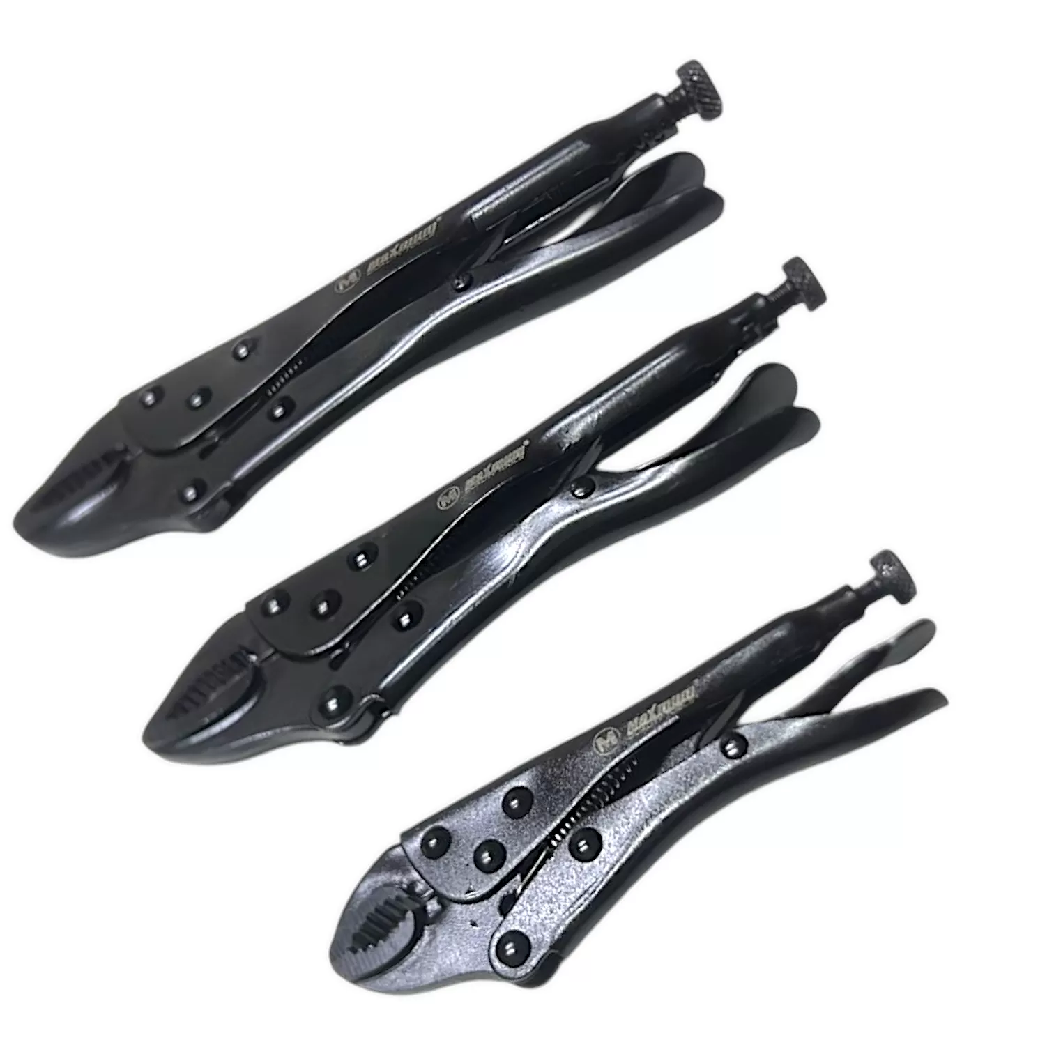 Набор клещей зажимных Cr-V с фиксатором 140/180/250 мм, хромированные, "MAXIMUM"  188 MX 12820
