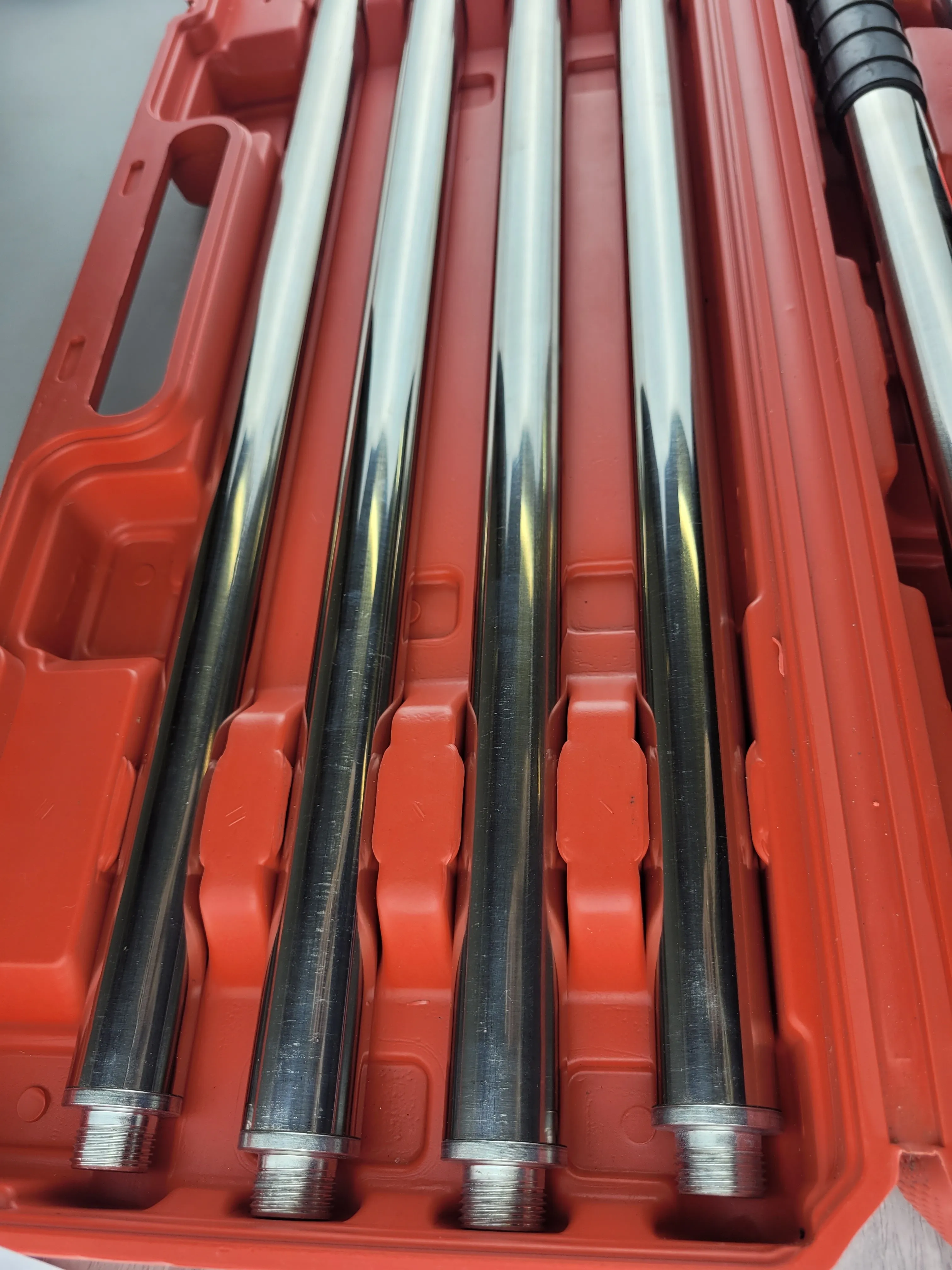 · Направляющая штанга: Помогает удерживать инструмент строго перпендикулярно поверхности, что критически важно для безопасности и качества крепления.