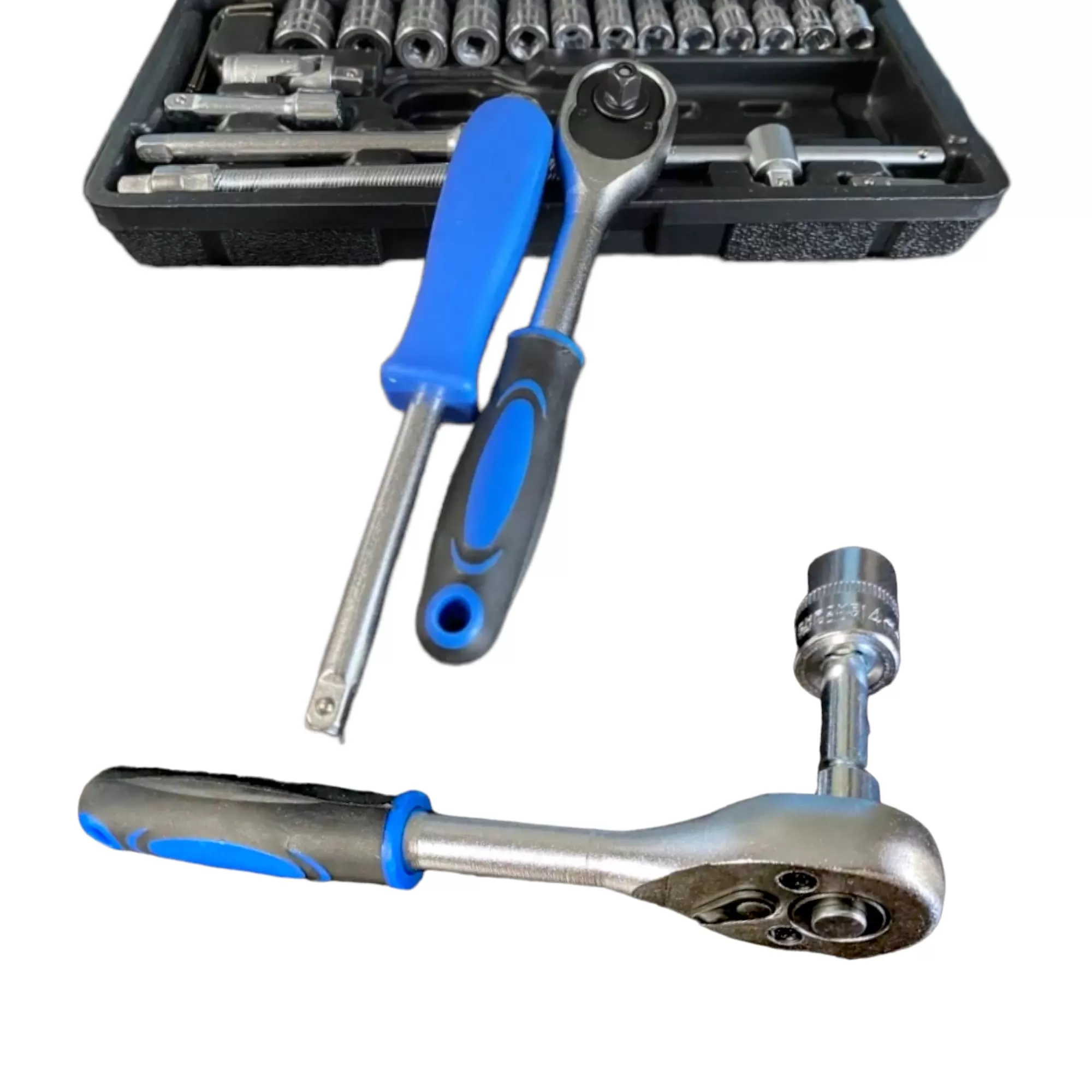 Набор инструментов для авто 46 предметов предназначен для обслуживания автомобилей, а также отлично подойдет для проведения ремонта бытовой и садовой техники. Инструменты для ремонта автомобиля 46шт. поставляются в удобном пластиковом кейсе с застежками. Все инструменты выполнены из стали со специальным покрытием из хром ванадия. Место для каждого элемента подписано, а детали набора промаркированы. Трещотка с обратным реверсом дополнена удобной двухкомпонентной рукояткой.