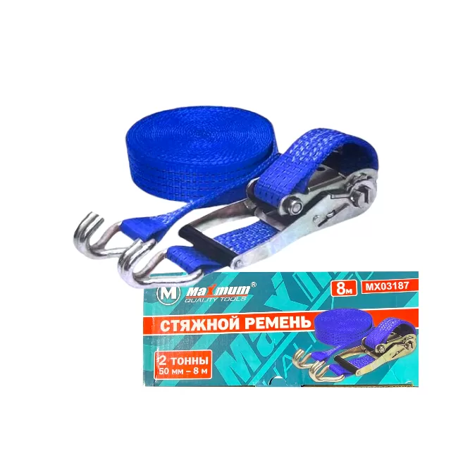 Ремень стяжной для крепления груза 2 тонны от "MAXIMUM QUALITY TOOLS" поставляется вместе с трещоткой, которая позволяет использовать весь ресурс изделия при закреплении груза. Инструмент прост в использовании и не требует особых навыков или усилий. Данная модель длиной 8 метров оснащена регулировкой длины, что значительно расширяет ее возможности. Стойкость к изнашиванию обеспечивает изделию продолжительную эксплуатацию. Длина и прочность изделия обеспечивают надежность применения при перевозке грузов в любом транспорте. Прочная лента ремней для крепления груза шириной 50 мм выполнена из полиэстера, а храповик из оцинкованной стали.