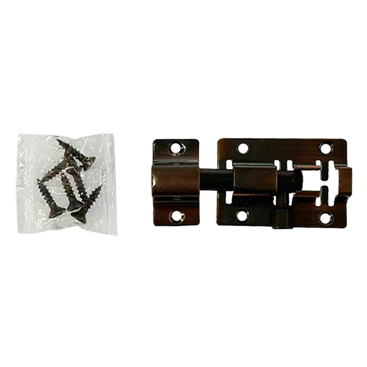 Квадратный шпингалет выполнен из стали и покрашен в медный цвет.