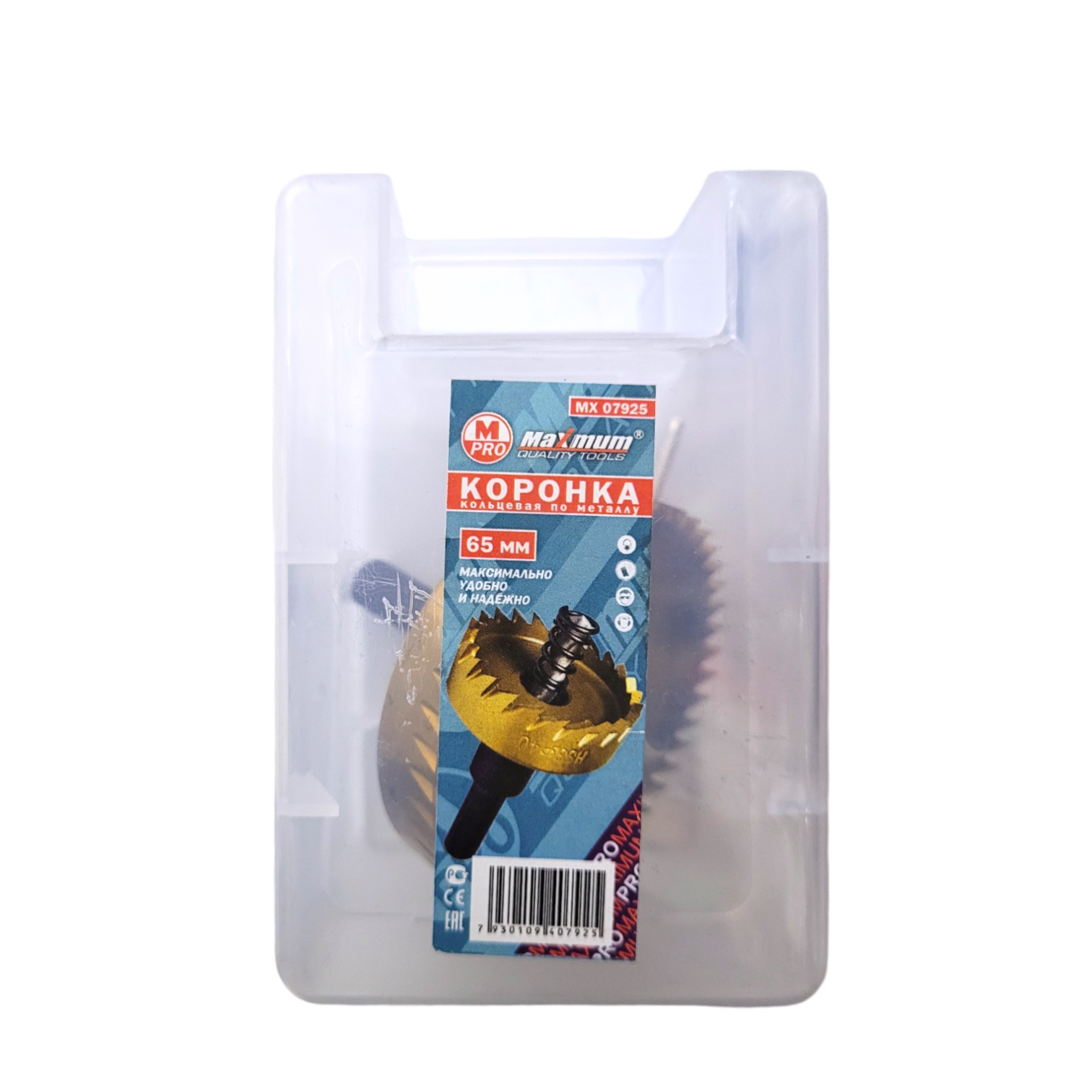 Коронка по металлу 65 мм, кольцевая, Maximum MX50 имеет в комплекте хвостовик c центровочном сверлом. Коронки кольцевые от Maximum применяются для сверления нержавеющей стали, алюминия, меди, чугуна, пластика и сэндвич-панелей.