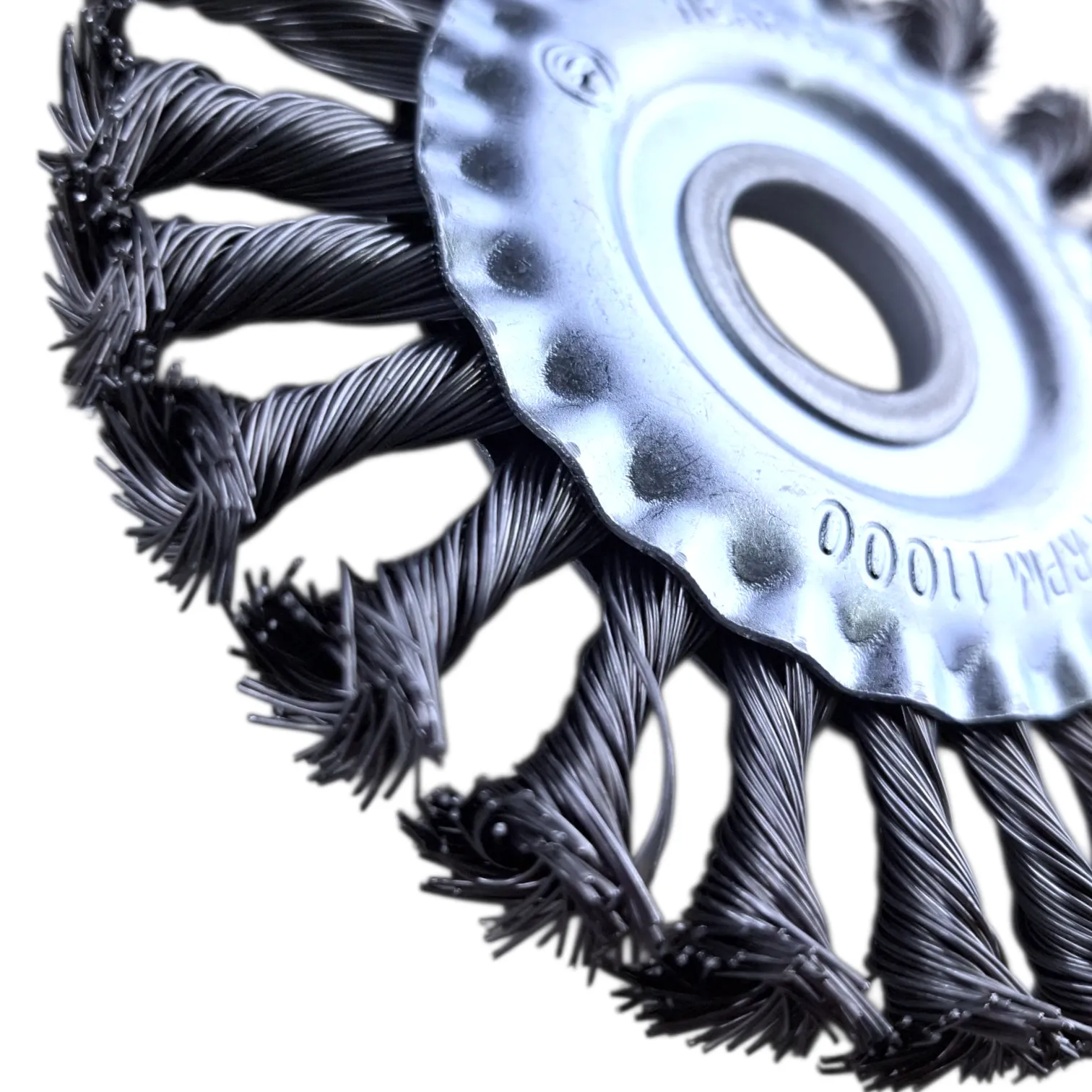 Корщетка по металлу 125 мм для болгарки (УШМ) — эффективный инструмент для очистки поверхностей. Эта насадка с посадочным диаметром 22,2 мм идеально подходит для зачистки металла от ржавчины, удаления старой краски, окалины и загрязнений, а также для обработки сварных швов. Благодаря плоской форме щетка для грубой очистки обеспечивает доступ в углы, пазы и сложные участки. Изготовлена из скрученной в жгуты проволоки из высокоуглеродистой стали, устойчивой к коррозии и рассчитанной на скорость до 11000 об/мин. Эргономичная конструкция снижает вибрацию и повышает эффективность работы.