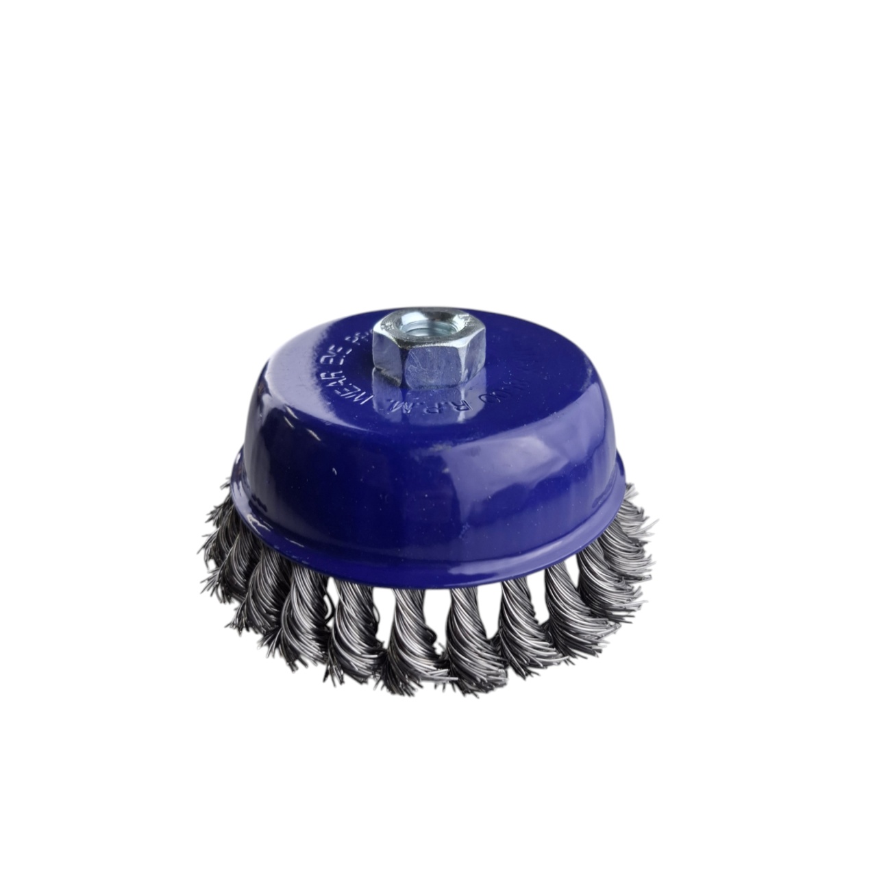 Витая чашечная щетка 3" от нашего бренда "Maximum" — профессиональный инструмент для быстрой и агрессивной зачистки металла. Стальная проволока толщиной 0.5 мм скручена в жгуты, которые затем собраны в щетку.
