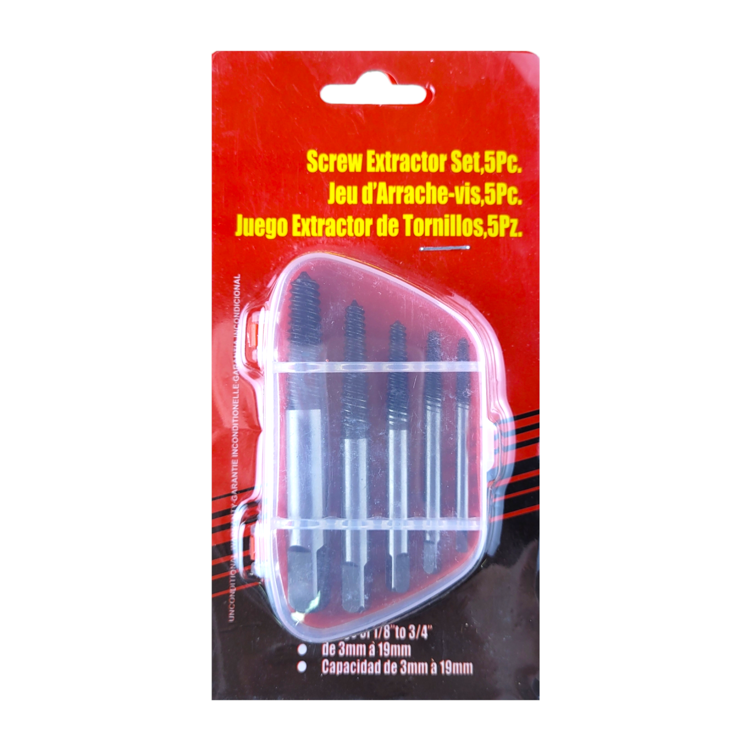 Экстрактор болтов или «вывертка» — слесарный инструмент которым без особого усилия можно удалить болты, винты и саморезы со сломанными головками или разбитыми шлицами. Принцип работы простой: экстрактор закручивается путем вращения по часовой стрелке, погружаясь в материал, извлекает поврежденный крепежный элемент. Экстракторы подбираются по размеру, в соответствии с величиной поврежденного крепежа. Набор из 5 экстракторов изготовлен из хром-молибденовой стали и поставляется в удобном кейсе для хранения. Экстракторы имеют прецизионный конический наконечник и подходят для резьбы поврежденных винтов M3-M18. Длина экстракторов в мм: 51, 58, 65, 75, 80. Диаметр: 2.5, 3, 4, 5, 6.5.