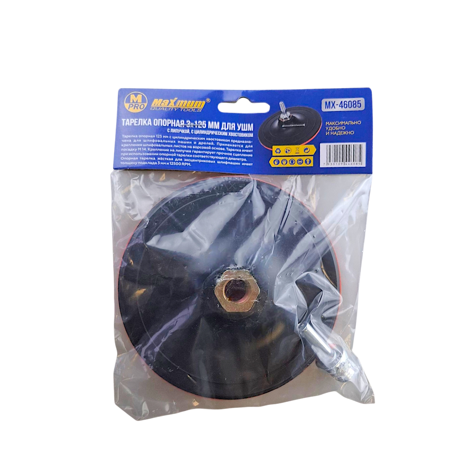 Тарелка опорная 8×125 мм для УШМ, с липучкой, цилиндрический хвостовик, "MAXIMUM" (Максимум)MX 46092